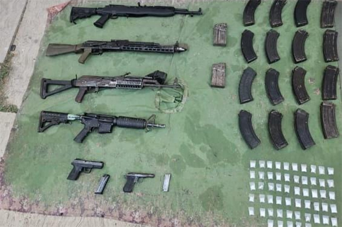 Redacción / La Voz de Michoacán Apatzingán, Michoacán. En otra acción operativa implementada en las últimas horas, las secretarías de Seguridad Pública (SSP) y de la Defensa Nacional (Defensa), así como de la Guardia Nacional (GN) aseguraron seis armas de fuego, cargadores, cartuchos útiles, equipo táctico y sustancia granulada con las características propias de la metanfetamina. Mientras los agentes de la Guardia Civil, Ejército Mexicano y GN recorrían las inmediaciones de la localidad de Cenobio Moreno, fue que localizaron cuatro fusiles y dos pistolas. Además, se encontraron 20 cargadores de distintos calibres, al igual que mil 255 cartuchos útiles, equipo táctico y 55 envoltorios de la citada droga. Todo lo asegurado fue puesto a disposición de la autoridad correspondiente a fin de llevar a cabo las diligencias pertinentes. La SSP labora en estrecha coordinación con instancias federales en protección de la seguridad y bienestar social. Las líneas de emergencias 911 y 089 se encuentran disponibles las 24 horas del día para reportar cualquier ilícito.