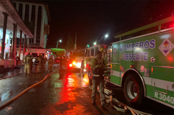Redacción / La Voz de Michoacán Uruapan, Michoacán. La madrugada de este sábado, un incendió consumió el conocido bar “Katara”, ubicado en el Centro de esta ciudad de Uruapan, a unos metros del monumento a la Bandera, siniestro que movilizó a bomberos y distintas corporaciones de auxilio, sin que se reportaran víctimas. Trascendió que al filo de las 04:00 horas algunos vecinos y automovilistas se percataron de una columna de humo negro y fuego que emanaban del citado antro, localizado en el Portal Aldama, casi esquina con la calle Independencia, por lo que notificaron a los sistemas de emergencia. Elementos de Bomberos de Rescate Michoacán, Delegación Uruapan y Voluntarios de inmediato se trasladaron al lugar para realizar el combate del fuego que amenazaba con propagarse a comercios aledaños, labores que se prolongaron por más de dos horas. Hasta el momento se desconoce cómo inició el siniestro, lo cual es materia de investigación por parte de las autoridades correspondientes, misma que habrán de determinarlo mediante los peritajes respectivos.