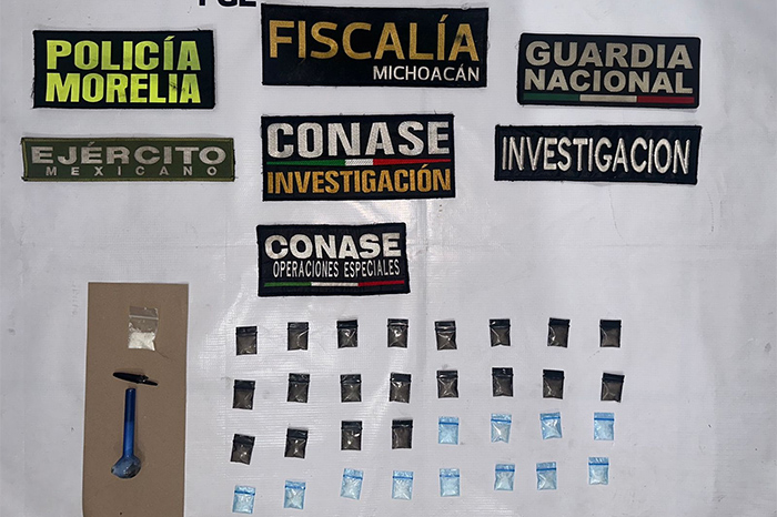 Redacción / La Voz de Michoacán Morelia, Michoacán. Durante una acción operativa implementada en un bar de la colonia Lago II, la Fiscalía General del Estado de Michoacán (FGE), en coordinación con personal de la Coordinación Nacional Antisecuestro (CONASE), la Guardia Nacional (GN), y la Secretaría de la Defensa Nacional (SEDENA), aseguró sustancia con apariencia de narcótico y detuvo a una persona, por su presunta relación en delitos contra la salud. En atención a una denuncia en la que se hacían referencia sobre actos de narcomenudeo en un establecimiento de la citada ubicación, personal de la Unidad de Investigación y Persecución al Narcomenudeo (UIPN) de la Fiscalía Especializada para la Atención de Delitos de Alto Impacto, recabó indicios que fueron presentados ante un Juez de Control, y que obsequió orden de cateo. En esta acción operativa realizada con apoyo de SEDENA, CONASE, GN se localizaron 32 bolsas de plástico que contenían una sustancia cristalina similar a la metanfetamina equivalente a 600 dosis; en el lugar fue detenido José Luis “N” de 47 años de edad. El establecimiento y la droga fueron asegurados, mientras que la persona detenida fue puesta a disposición del Ministerio Público que continuará con los actos de investigación. La FGE refrenda su compromiso de atender y perseguir los delitos que atenten contra la salud de las y los michoacanos.