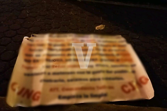 Redacción / La Voz de Michoacán Uruapan, Michoacán. Una narcomanta fue colocada por un joven en un puente peatonal del Boulevard Industrial, en esta ciudad de Uruapan, el cual fue detenido por los elementos de la Policía Michoacán gracias a las cámaras de vigilancia del C5i, a quien también le aseguraron en su poder un narcoletrero más, según la información brindada a este medio por contactos oficiales. El acontecimiento fue este sábado. El indiciado dijo llamarse Antonio Everardo G., de 20 años de edad, persona que utilizaba para trasladarse un coche de la marca Volkswagen Jetta, de color gris, con placas de circulación PGD349E de esta entidad federativa, unidad que fue decomisada. Mandos policiacos detallaron a esta redacción que la aprehensión del muchacho se logró gracias a las cámaras de videovigilancia del C5i, pues por medio de ellas se consiguió captar el momento exacto en el que el presunto infractor ponía el narcorótulo en el citado puente peatonal, a la altura de la colonia La Cofradía. El imputado quedó a disposición de la representación social al igual que lo incautado. También, se conoció que los narcomensajes estaban firmados por el Cártel de Jalisco Nueva Generación, dijeron a esta redacción fuentes allegadas al asunto.
