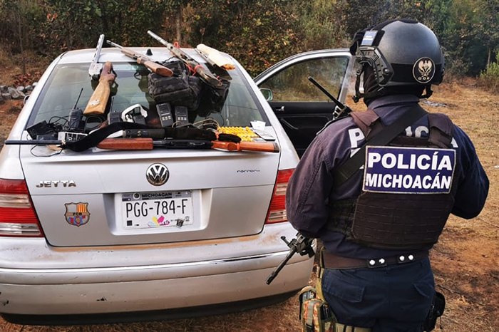 Redacción / La Voz de Michoacán Pátzcuaro, Michoacán. Durante las tareas llevadas a cabo por la implementación de la Operación Conjunta Michoacán, las secretarías de Seguridad Pública (SSP), de la Defensa Nacional (SEDENA), Guardia Nacional (GN) y de Fiscalía General del Estado (FGE), lograron la destrucción de un campamento, así como el aseguramiento de 4 armas de fuego, 31 cartuchos, un vehículo y equipo de radiocomunicación. Los agentes de seguridad desarrollaban labores de vigilancia en una zona serrana de la localidad de Santa Juana, sitio donde ubicaron un campamento en el que se localizaron indicios de la realización de actividades ilícitas, por lo que se efectuó su destrucción. De igual forma, se ubicó un vehículo de la marca Volkswagen y 4 armas de fuego, 31 cartuchos útiles, 6 equipos de radio comunicación, procediéndose a realizar el aseguramiento y puesta a disposición de la autoridad competente para que se deslinde responsabilidad.