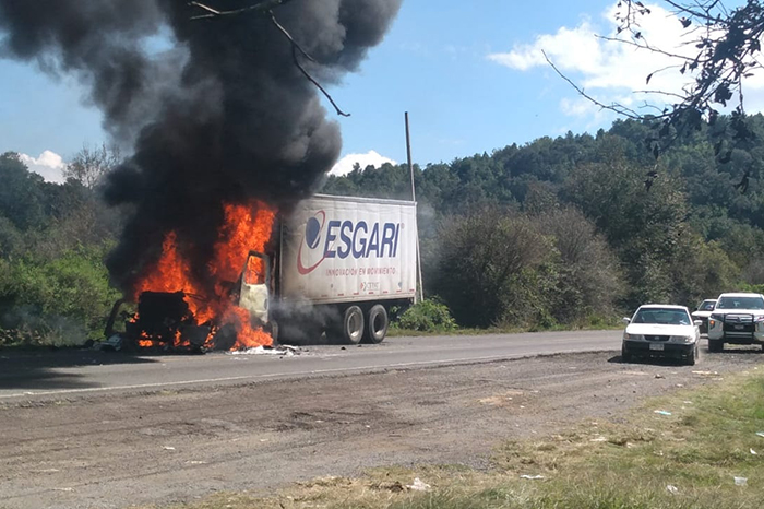 Los policías comunitarios detuvieron a los jóvenes al momento en que quemaban una camioneta repartidora en el tramo Cherán-Charapan