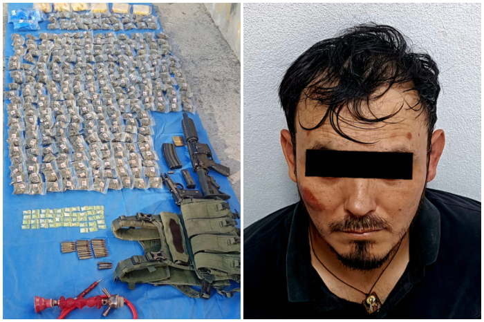 Redacción / La Voz de Michoacán Apatzingán, Michoacán. Como parte de tareas de investigación emprendidas por la Fiscalía General del Estado de Michoacán (FGE), con apoyo de la Secretaría de la Defensa Nacional (DEFENSA), se logró el aseguramiento de 243 dosis de diferentes drogas, así como dos armas de fuego, cargadores, cartuchos útiles y un chaleco táctico; hay una persona detenida identificada con el alias de “El Batizo”. Durante una acción operativa llevada a cabo por personal de la Fiscalía Regional de Apatzingán y DEFENSA, en seguimiento a tareas de investigación y al circular bordo de unidades oficiales, sobre la calle Miguel Silva de la zona urbana del municipio de Buenavista, se percataron de que habían sido violados los sellos del acceso de un inmueble que había sido asegurado con antelación; sin embargo, al aproximarse al lugar, desde el interior del inmueble fueron agredidos con disparos de armas de fuego, acción que fue repelida. Tras el enfrentamiento, José Alberto “N” alías “El Batizo” trató de darse a la fuga por la azotea del inmueble; sin embargo, fue detenido. Al realizar una revisión en el domicilio, los agentes investigadores localizaron 43 envoltorios con sustancia granulosa con las características de la metanfetamina, así como 306 envoltorios más con vegetal verde similar a la marihuana, además de un arma de fuego tipo fisil, un arma de fuego tipo escuadra, dos cargadores desabastecidos, 10 cartuchos útiles de diferentes calibres, un objeto tipo shisha con una manguera, y un chaleco táctico con porta cargadores. El inmueble, el detenido, las armas, los cargadores, los cartuchos útiles y el narcótico fueron asegurados y quedaron a disposición del agente del Ministerio Público, a efecto de continuar con las investigaciones.