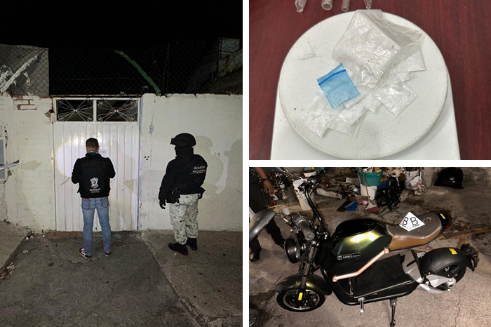 Redacción / La Voz de Michoacán Morelia, Michoacán. Durante una acción operativa implementada en este municipio, la Fiscalía General del Estado de Michoacán (FGE), en coordinación con personal de la Guardia Nacional (GN), aseguró un inmueble por su posible relación en conductas ilícitas; cinco personas fueron detenidas. Derivado de denuncias ciudadanas que refería sobre la posible compra-venta de narcóticos, en un inmueble ubicado en la calle Zacán de la colonia Lomas de Guayangareo, personal de la Fiscalía Especializada para la Atención de Delitos de Alto Impacto reunió datos de que prueba que fueron presentados ante un Juez de Control, quien obsequió la respectiva orden de cateo. En cumplimiento a este mandato judicial realizado con apoyo de la GN, se aseguraron diversas cantidades de vegetal verde con características de marihuana, así como de sustancia sólida, al parecer metanfetamina; en el lugar también fue localizado un vehículo birrodante, tipo scooter, que presentó alteraciones en sus medios de identificación. Durante la inspección fueron detenidos Pedro Eduward “N”, Alexis “N”, Nain “N”, Rosa María “N”, y Elizabeth “N”, de 43, 26, 46, 24, y 38 años de edad, respectivamente, quienes al igual que el narcótico, el scooter y el inmueble, quedaron a disposición del agente del Ministerio Público de la Unidad Contra el Robo al Transporte, para continuar con las investigaciones correspondientes. La FGE refrenda su compromiso de mantener acciones que garanticen seguridad y bienestar a las y los michoacanos.