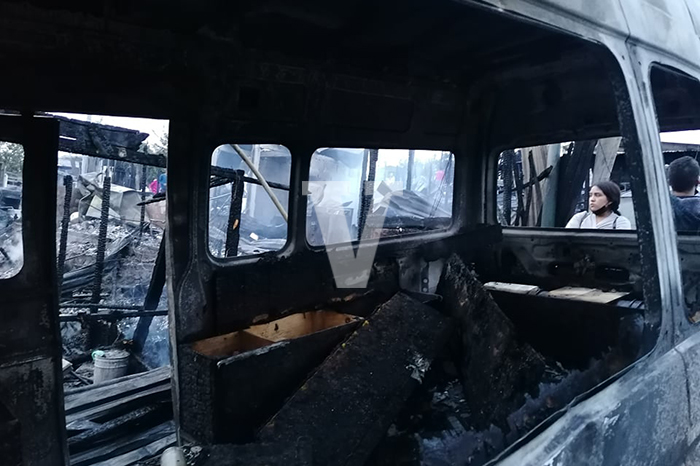 El fuego incluso alcanzó una combi de la ruta naranja que ahí se encontraba.