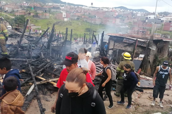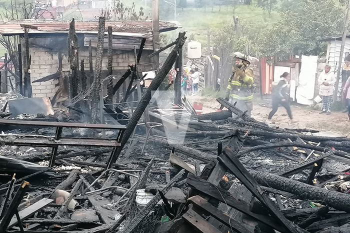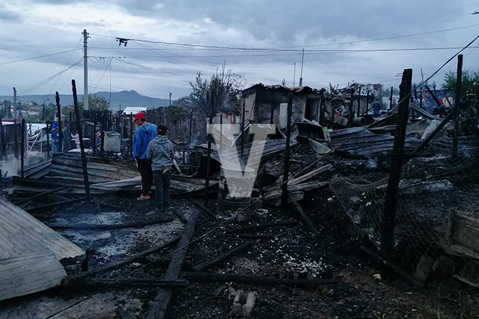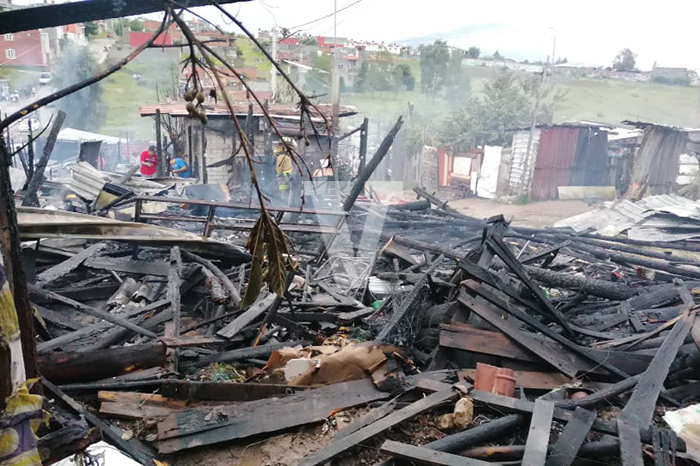 Morelia, Michoacán. Un incendio consumió entre 8 y 10 casas de madera y lámina de cartón ubicadas en un predio irregular conocido como Brisas del Sur a un costado la colonia Praderas del Sur.