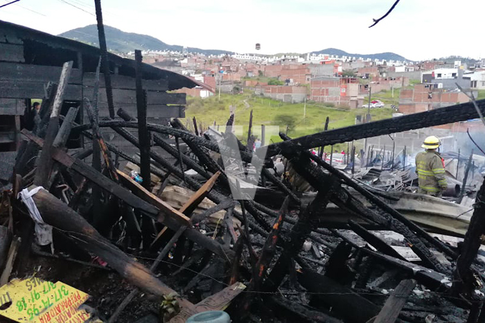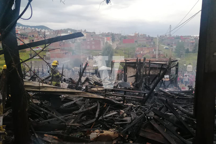 El incendio inició en una casa dela Manzana 4 y de ahí se fue consumiendo hasta 10 viviendas, además de una combi de servicio público