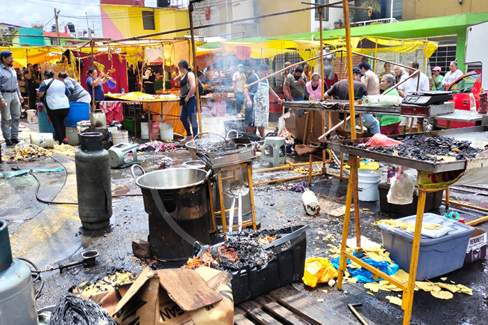 Otros locatarios del mercado ambulante ayudaron a limpiar las afectaciones que dejó la explosión.