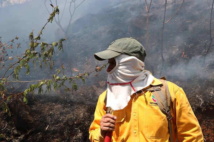 Redacción / La Voz de Michoacán Uruapan, Michoacán. Gracias a los esfuerzos realizados por brigadistas municipales Delfines, de la Comisión Nacional Forestal (Conafor) y Protección Civil Municipal, se logró controlar el incendio registrado a las 12:00 horas en el Cerro de La Cruz, a la altura de la calle Prolongación Sinaloa. Fueron más de 6 horas de maniobras de control y sofocación, donde los brigadistas contra incendios surcaban guardarrayas y realizaban labores de cortafuego para evitar que el incendio se propagará por las diferentes zonas boscosas del cerro de La Cruz. El apoyo de Bomberos Voluntarios de Uruapan, Seguridad Ambiental, Inspección Ambiental, voluntarios de la zona, personal de la Secretaría de Desarrollo Urbano y Medio Ambiente, además de dependencias municipales, fueron claves para lograr sofocar totalmente el fuego pasadas las 18 horas. Los primeros reportes señalan que no hubo daño en arbolado, sólo quema de herbáceas y arbustivas. En estos momentos brigadistas y especialistas ambientales resguardaran el lugar para realizar el dictamen final de la zona afectada y evitar que las llamas vayan a reavivar.