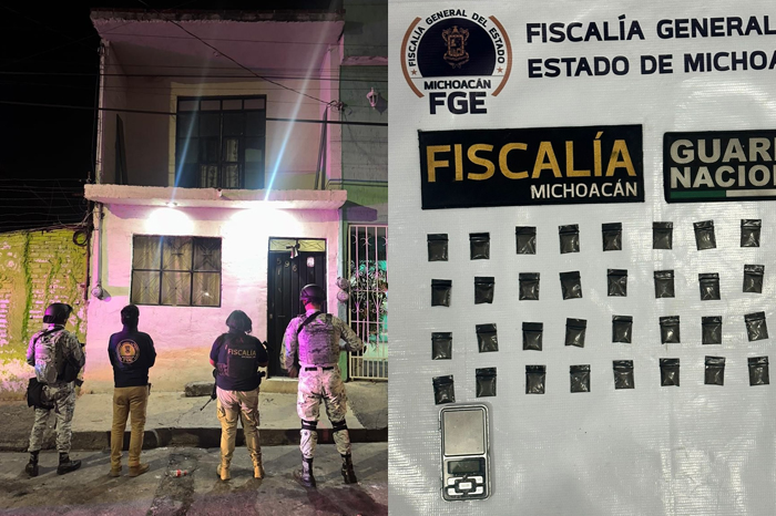 Redacción / La Voz de Michoacán Morelia, Michoacán. Como parte de las acciones encaminadas a combatir el delito de narcomenudeo, la Fiscalía General del Estado de Michoacán (FGE) aseguró 755 dosis de una sustancia con características de metanfetamina y detuvo a un hombre, presuntamente relacionado con actividades ilícitas, tras realizar un cateo en la colonia Santiaguito, en Morelia. Esta acción fue resultado del seguimiento a denuncias anónimas que alertaban sobre posibles actividades delictivas en un domicilio ubicado en la calle Sierra de Nahuatzen. Ante ello, personal de la Unidad de Investigación y Persecución al Narcomenudeo (UIPN), adscrita a la Fiscalía Especializada para la Atención de Delitos de Alto Impacto, realizó labores de investigación que permitieron reunir los datos de prueba necesarios para solicitar una orden de cateo, misma que fue otorgada por el Juez de Control. En cumplimiento al mandato judicial, agentes de la UIPN, con el apoyo de la Unidad Canina (K9) y elementos de la Guardia Nacional (GN), llevaron a cabo la intervención en el inmueble. Durante la diligencia fueron aseguradas 755 dosis de una sustancia con características propias de la metanfetamina, las cuales fueron embaladas conforme a los protocolos establecidos para su análisis posterior. De igual forma fue detenido Ramiro “N”, de 61 años de edad, quien al igual que el inmueble quedaron a disposición del Ministerio Público que resolverá su situación legal y continuará con las investigaciones. La FGE refrenda su compromiso de mantener acciones que garanticen seguridad y bienestar a las y los michoacanos.