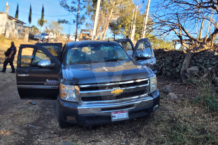 En el sitio, las autoridades aseguraron una camioneta Chevrolet Silverado de color negro, con matrícula MW-2112-D, de Michoacán, la cual presenta varios impactos de bala pues era utilizada por los delincuentes.