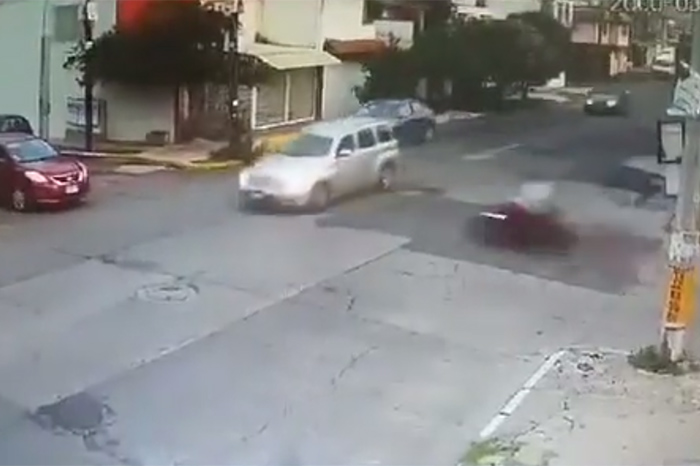 Redacción / La Voz de Michoacán Morelia, Michoacán. Un motociclista falleció tras impactarse contra el costado izquierdo de una camioneta color gris, esto en la colonia Matamoros, aledaña a la colonia Vasco de Quiroga, en Morelia, trascendió en la cobertura de la noticia. Recientemente circula en redes sociales el video que muestra la impactante escena cuando el conductor de la moto se impacta contra el vehículo y sale despedido al vacío y luego cae de manera estrepitosa en el pavimento. El accidente ocurrió la mañana del pasado lunes sobre la calle Tzintzuntzan esquina con calle Cinco. Unas personas reportaron el incidente al número de emergencias, posteriormente llegaron paramédicos, quienes confirmaron el deceso del motorista, cuya identidad hasta el momento desconocida, él conducía una Italika Vort, con placa K8Z08H. Se supo que el otro vehículo involucrado es de la marca Chevrolet HHR, el cual era manejado por una mujer, quien resultó herida y fue canalizada a un hospital para su adecuada atención médica. Unos patrulleros acordonaron el área y avisaron a la Fiscalía General del Estado (FGE), luego arribaron los especialistas de la Unidad de Atención Inmediata, quienes se encargaron de las investigaciones correspondientes y trasladaron el cadáver a la morgue. Asimismo, los transportes siniestrados en el hecho quedaron asegurados por la Policía, fueron retirados por una grúa y llevados a un corralón. #EnVideo queda grabado como un motociclista pierde la vida al impactarse en un vehículo en la Col Matamoros en Morelia pic.twitter.com/V0n9zdv2Vg— Revolución Social Morelia (@ReSo_Morelia) November 1, 2023