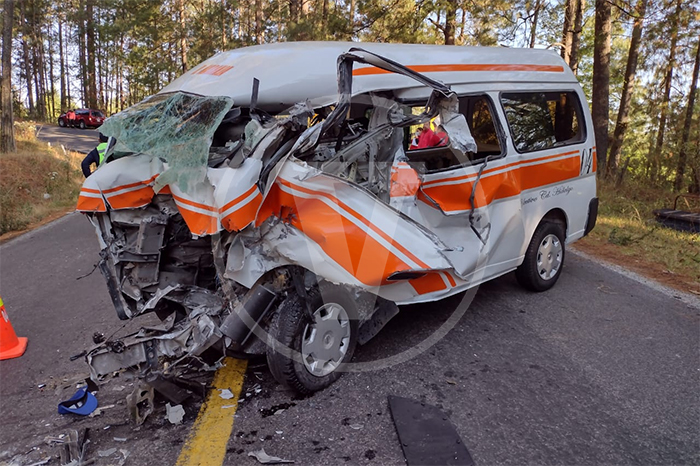 Redacción / La Voz de Michoacán Ciudad Hidalgo, Michoacán. Ya fueron identificadas las seis personas que lamentablemente perecieron tras el choque de frente entre una combi del servicio público y un camión de carga, sobre la carretera Zinapécuaro – Ciudad Hidalgo, además hay dos sobrevivientes heridas. Las víctimas son, María Carmen G., 54 años, Daniel V., de 12 años, Jennifer Lizbeth M., 36 años, ellos tres vecinos de la colonia Tiro al Blanco, así como Abigail Alanís G., 77 años, Gregorio V., ambos habitantes de la colonia Francisco Villa de Ciudad Hidalgo y Martín M., de quien se ignoran mayores datos. Cabe recordar que antes de las 08:00 horas, una camioneta tipo Urvan, de la marca Nissan, de color blanco con naranja, con número económico 04 y matrícula PKG614C, chocó de frente contra un tráiler cuyo chofer tras el impacto se dio a la fuga. La colisión tuvo lugar en el kilómetro 10+000, en las inmediaciones de la población de “El Tren”, ubicada en los límites de Queréndaro y Ciudad Hidalgo. Al sitio acudieron paramédicos de Protección Civil, los cuales confirmaron la muerte de las 4 mujeres y dos hombres, mientras que Karla Iveth de 17 años edad resultó lesionada fue trasladada de emergencia al Hospital Infantil y Juventino C., de 58 años, también herida fue canalizada al Hospital Civil. Según los primeros reportes uno de los vehículos involucrados habría invadido el carril contrario y así sobrevino el choque. Elementos de Tránsito y Movilidad de la Guardia Civil, abanderaron el área, siendo cerrada la circulación en su totalidad. Agentes y peritos de la Fiscalía General del Estado continúan con las averiguaciones respectivas sobre el trágico percance.