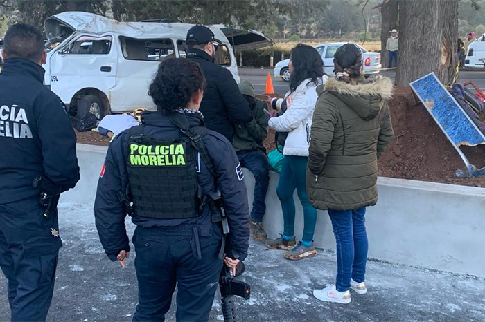 Morelia, Michoacán. Una camioneta tipo Van volcó sobre la carretera Morelia-Quiroga, incidente que dejó varios lesionados y tres fallecidos, todos ellos cortadores de fresa, informaron autoridades policiales.
