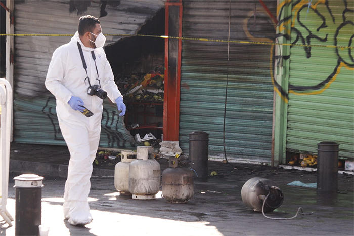 Redacción / La Voz de Michoacán Morelia, Michoacán. Mary perdió todo su puesto de frutas, es una de las comerciantes afectadas tras el incendio del Mercado San Juan, en Morelia, donde al menos 20 locales fueron consumidos por las llamas, los que están al exterior del inmueble, por la calle Revolución. La conflagración se reportó durante los primeros minutos de este martes y fue una vecina del centro de abasto quien dio aviso a comerciantes, relató Mary a La Voz de Michoacán, con su gatito en brazos, el cual sufrió quemaduras. Según el testimonio de la oferente, el incendio habría iniciado en un puesto de venta de hierbas, sin cortinas de metal, solo cubierto con telas, pero serán las autoridades correspondientes quienes den a conocer el peritaje respectivo. Al momento se encuentra acordonada la calle Revolución, entre Plan de Ayala y 20 de Noviembre, aunque en el interior del mercado se opera de manera normal, entrando por Plan de Ayala. Una vez que fue sofocado el incendio por bomberos estatales y municipales, además de la ayuda de la Policía Morelia, arribaron al lugar peritos de la Fiscalía General del Estado de Michoacán, para realizar las investigaciones correspondientes y determinar con mayor exactitud la causa. Mary informó que lo que les dijo personal del Ayuntamiento, que encabeza el edil Alfonso Martínez Alcázar, hasta en dos o tres días les ayudarán con la limpieza y colocación de láminas.