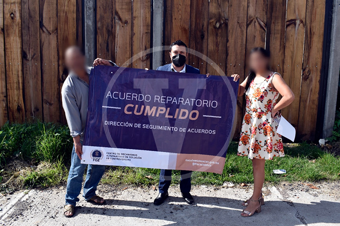Redacción / La Voz de Michoacán Morelia, Michoacán. La Fiscalía General del Estado de Michoacán (FGE) a través del Centro de Mecanismos Alternativos de Solución de Controversias (CMASC), logró la restitución de un inmueble en favor de un hombre, víctima del delito de despojo en esta ciudad. De acuerdo a los datos que constan en el expediente, Lucas A., es propietario de un terreno ubicado en la esquina de las calles Constantino Huitzimengari y Juan Muñoz de Molina, en la colonia Ilustres Novohispanos, al cual constantemente acudía a realizar trabajos de limpieza y tenía delimitado con alambre de púas. En diciembre del año 2020, fue notificado de que habían construido en una parte de la propiedad, por lo que se trasladó al inmueble para confirmar la información; al llegar al mismo e investigar, se percató que Claudia Lizeth R., se había apoderado del lugar negándose a desalojarlo, por lo que acudió a presentar una denuncia. Tras las actuaciones, el caso fue derivado al CMASC, desde donde se exhortó a las partes intervinientes a solucionar este conflicto a través de un acuerdo reparatorio, mismo al que tras acceder se le dio cumplimiento este día, dándose por finalizada la acción penal. El Artículo 186 del Código Nacional de Procedimientos Penales (CNPP), establece que los acuerdos reparatorios son aquellos celebrados entre la víctima u ofendido y el imputado que, una vez aprobados por el Ministerio Público o el Juez de Control, y cumplidos en sus términos, tienen como efecto la extinción de la acción penal.