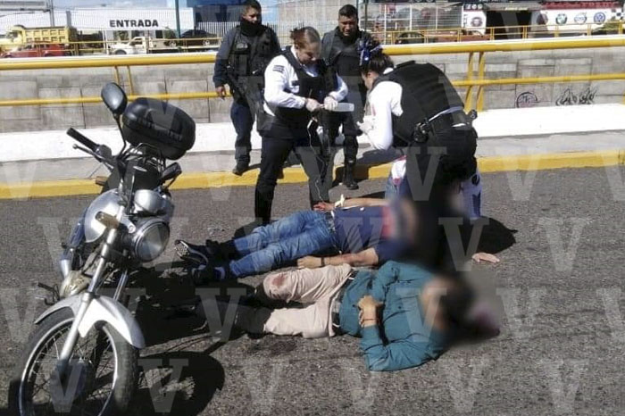 Redacción / La Voz de Michoacán Morelia, Michoacán. Dos hombres quedaron heridos, uno de ellos de gravedad, al accidentarse en la moto en la que viajaban este martes en el Libramiento República, al norte de la ciudad de Morelia. El percance ocurrió a la altura de la calle Pico de Tzirate, en las inmediaciones de una sucursal de la cadena de restaurantes “El Pollo Feliz”. Unas personas que pasaban por el sitio fueron las primeras en auxiliar a los lesionados y de inmediato llamaron al número de emergencias 911, lo cual desató la pronta movilización de la Policía y de los socorristas. Los agentes de la Policía Municipal y un ciudadano vestido de civil dieron los primeros auxilios a los pacientes, de los cuales se desconocen sus generales, ya que fueron atendidos y canalizados lo más rápido posible a un hospital de esta urbe. Unos rescatistas en su ambulancia trasladaron justamente a los lastimados (uno tenía un fuerte golpe en el cráneo). El accidente fue en la colonia Lomas del Tecnológico y con relación al mismo hubo dos versiones: una de ellas en las que se afirma que la motocicleta de las víctimas derrapó y otra que menciona que se estrelló por alcance contra una camioneta. Ahora serán las autoridades de Tránsito y las investigadoras las que establezcan qué fue lo que realmente pasó. El acontecimiento fue atendido por los elementos de la Policía de Morelia y por el Agrupamiento Motorizado de la Policía Michoacán.