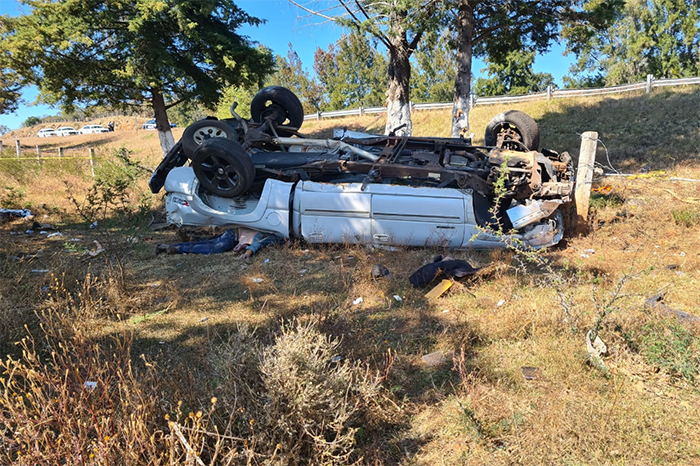 Morelia, Michoacán. Un saldo de tres personas fallecidas y dos heridos dejó la volcadura de una camioneta en la autopista de Occidente.