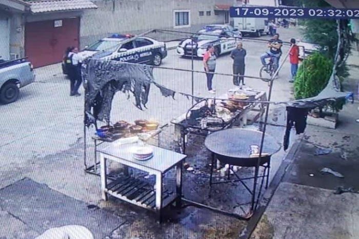 Morelia, Michoacán.- Dos personas resultaron lesionadas tras el flamazo que se registró en un puesto de comida ubicado en la colonia Jaujilla, en Morelia. La emergencia fue atendida rápidamente por bomberos de la Coordinación Estatal de Protección Civil Michoacán (CEPCM), trascendió en la labor periodística. El accidente ocurrió la tarde de este domingo en un comercio de quesadillas y tortillas, localizado en la calle Tehuacán. Se supo que en determinado, de manera accidental, el cilindro de gas se cayó, ocurrió una fuga seguida de un flamazo. La situación fue reportada la número de emergencias, entonces arribaron los vulcanos estatales, quienes auxiliaron a dos mujeres, mismas que sufrieron quemaduras; uno paramédicos canalizaron a las pacientes a un hospital. El puesto de alimentos también terminó dañado. En las labores de ayuda participaron patrulleros municipales y algunos vecinos.