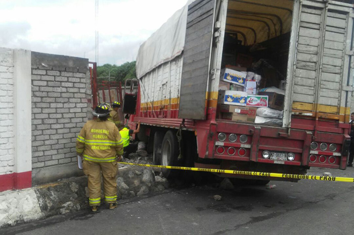 Alejandro Serrano/La Voz de Michoacán Morelia, Michoacán. Un camión de carga que llevaba abarrotes se quedó sin frenos y atropelló a un joven de 21 años quien murió. El hecho se dio esta tarde cuando el camión de carga se quedó sin freno y se proyectó contra inmueble atropellando a un joven de 21 años de edad. El chófer es aparentemente padre del occiso. El accidente se dio en la calle Jesús Díaz Barriga en el Mercado de Abastos. Esperan que acudan los expertos de la Procuraduría mientras Bomberos de Morelia apoyan a las tareas.