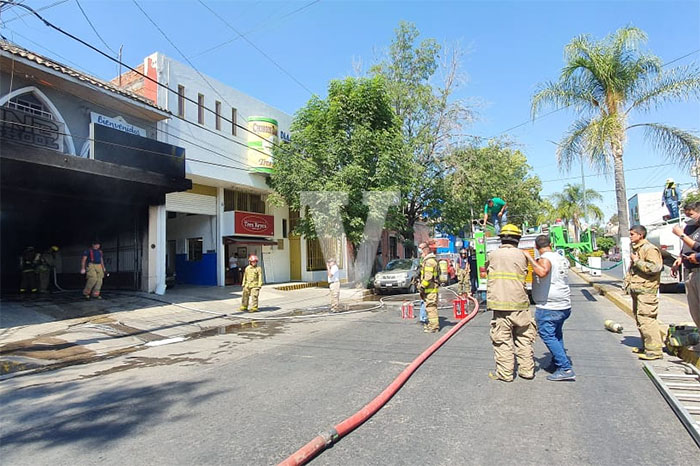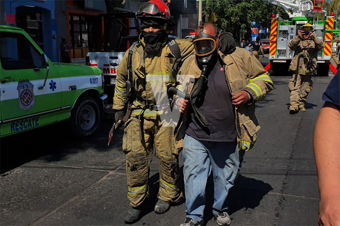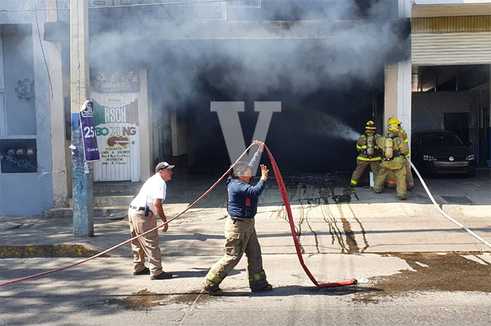 Redacción / La Voz de Michoacán Zamora, Michoacán. La mañana de este sábado, se movilizaron de los cuerpos de auxilio de Bomberos Municipales y Rescate al registrarse un incendio en el interior de un negocio de Baños de Vapor en esta ciudad de Zamora. Fue cerca de las 10:30 horas, cuando automovilistas reportaron al 911 que del citado negocio ubicado sobre la Avenida Juárez entre las calles Madero y Pino Suárez, de la zona Centro, salía humo negro y se alcanzaba apreciar algo de fuego. Al llegar los vulcanos fueron notificados que las llamas se encontraban en un tanque subterráneo de almacenamiento de diésel con capacidad de aproximadamente mil litros, además de que se encontraban dos personas dentro del negocio. Foto: La Voz de Michoacán. Los bomberos comenzaron a sofocar el fuego, logrando rescatar a Guillermo C., C., de 52 años de edad, trabajador del lugar y, a Ramón M., C., de 55 años de edad, cliente del establecimiento, los cuales recibieron los primeros auxilios por parte de los paramédicos. Cabe señalar que los elementos de la Policía y Tránsito Municipal mantuvieron cerrada la circulación para apoyar en las labores de auxilio, sin que por fortuna se registraran víctimas que lamentar. Foto: La Voz de Michoacán. Foto: La Voz de Michoacán.