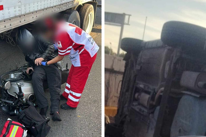Redacción / La Voz de Michoacán Morelia, Michoacán. Dos accidentes vehiculares se registraron durante la mañana de este lunes en diferentes puntos de la ciudad de Morelia, uno de ellos dejó un lesionado, informaron autoridades policiales. Uno de los casos ocurrió sobre Calzada Ventura Puente y avenida Solidaridad, donde un tráiler y una motocicleta protagonizaron un choque; el motorista quedó herido, él fue auxiliado por policías estatales, luego unos paramédicos lo canalizaron a un hospital para su adecuada atención médica. Asimismo, sobre una de las laterales del Periférico Paseo de la República, en la zona norte de esta capital, justo a la altura de la colonia Lomas del Tecnológico, un automóvil volcó. Agentes de vialidad se encargaron realizar los peritajes de ambos percances y las unidades siniestradas fueron retiradas por grúas. Es importante conducir con precaución, a bajas velocidades y estar atentos al camino.