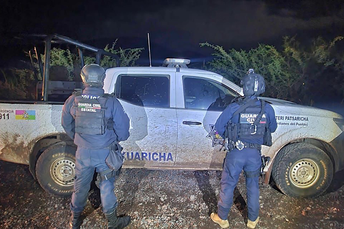 EFE / La Voz de Michoacán Morelia, Michoacán. Presuntos sicarios plagiaron a siete indígenas que forman parte de una Guardia Comunal que realiza labores de policía en la región purépecha de Tangamandapio, donde pobladores han realizado bloqueos carreteros e incendiado vehículos para exigir la aparición de los agentes. La Fiscalía General del Estado (FGE) informó a este miércoles a EFE que los guardias comunales habrían sido plagiados durante la tarde del martes, cuando a bordo de una patrulla y un vehículo particular realizaban un recorrido por caminos de terracería, en una zona boscosa del poblado de La Cantera, en el municipio de Tangamandapio. Los agentes desaparecidos son el director de la Guardia Comunal, Marco Antonio Reyes Amezcua, así como los elementos Patricia Mateo Victoriano, Luis Fernando Lucas Maravilla, Ricardo Ángel Ascencio Bravo, Brayan Javier Hernández Pablo, Israel Maravilla Juan y Oscar Martínez Cuellar. Pobladores de La Cantera bloquearon este miércoles carreteras que unen Tangamandapio con los municipios de Jacona y Los Reyes, donde en las últimas 12 horas han incendiado un autobús de pasajeros, un tractocamión y un camión de carga. Foto: La Voz de Michoacán. Indígenas purépechas de otras comunidades de Michoacán han amagado con radicalizar protestas en las próximas horas, como parte de su exigencia de que aparezcan con vida los siete guardias comunales. Alfredo Ramírez Bedolla, gobernador de Michoacán, reveló que en la región de Tangamandapio se ha desplegado un operativo en el que participan la Guardia Civil, Fiscalía y el Ejército Mexicano, cuyos agentes encontraron abandonados los vehículos de los agentes en lo alto de una montaña. Foto: SSP En esta región michoacana operan los grupos del narcotráfico autodenominados como Cárteles Unidos (Los Viagras), Los Caballeros Templarios y el Cártel Jalisco Nueva Generación (CJNG). Estas organizaciones del crimen organizado buscan ingresar a los poblados purépechas para intentar establecer laboratorios de droga y campamentos de sicarios en zonas boscosas estratégicas.