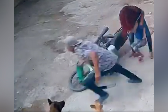 Redacción / La Voz de Michoacán Apatzingán, Michoacán. “Vete a la v...”, dijo una mujer a su pareja, mientras su pequeño hijo lloraba, cuando prefirió abandonarlos que ser atrapado por la policía. El presunto ladrón tuvo que decidir entre su familia o caer en manos de la justicia, cuando viajaban en una motocicleta con reporte de robo en la ciudad de Apatzingán. Así lo dio a conocer la página de Facebook de “Sanción Social”, a través de un video sobre el hecho, donde se observa al presunto delincuente a bordo de una motocicleta y acompañado de una mujer y un menor –al parecer su pareja y su hijo–. Por la manera como se ve la escena captada por una cámara de vigilancia, el hombre era seguido por una patrulla de la Policía Michoacán. En su intento de fuga, perdió el control de la moto, que quedo del lado sobre una banquea, aunque su él y su esposa lograron mantenerse en pie, no así el pequeño, que rápidamente fue levantado por su mamá. Sin embargo, el sujeto emprendió la huida, pero antes de correr y abandonar a la familia, quiso recoger un celular que se le cayó, lo que no pudo lograr ante la cercanía de los policías, así que solo agarró una mochila y se fue del lugar. No se sabe si fue detenido, aunque se alcanza a ver que la se detienen la patrulla cerca de la mujer que se quedó en el lugar abrazando al niño. Video tomado del Facebook de Sanción Social.