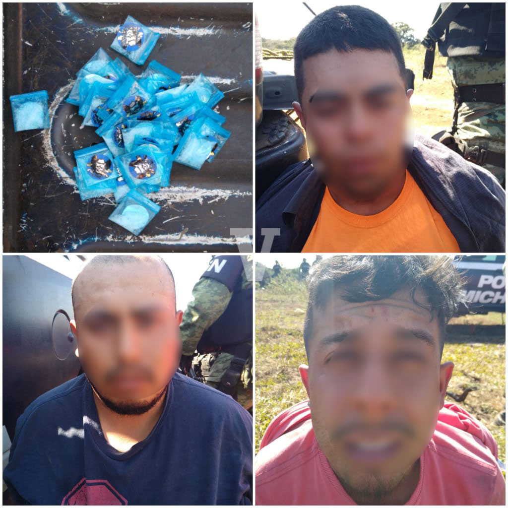 Tlazazalca, Michoacán. El abatido y los tres detenidos luego de un enfrentamiento a balazos contra los efectivos de la Policía Michoacán y de la Guardia Nacional (GN) en Tlazazalca son presuntos miembros del Cártel Jalisco Nueva Generación (CJNG), informaron contactos de inteligencia policial.