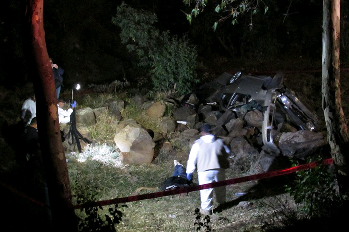 Alejandro Serrano/ La Voz de Michoacán Morelia, Michoacán. Un automóvil se impactó contra una vaca y a consecuencia de ello volcó, el suceso dejó como saldo un muerto y dos mujeres lesionadas. El accidente fue la anoche en la carretera Morelia-Quiroga, a la altura de la Unidad Deportiva de Tacícuaro, a dos kilómetros de la entrada a Capula. El coche es uno de la marca Volkswagen Jetta, de color gris. La vaca que fue embestida por la unidad terminó muerta. El carro se precipitó a un desnivel y se estrelló contra unas rocas, donde quedó volcado. A raíz del suceso pereció quien fue identificado como Cristian "X"., de 19 años de edad. Dos féminas resultaron heridas, de ellas se desconocen sus generales, fueron trasladadas a un nosocomio local. Los elementos de la Policía Michoacán de Tránsito abandersron el sitio y el personal de la Procuraduría General de Justicia se encargó de las diligencias de ley.