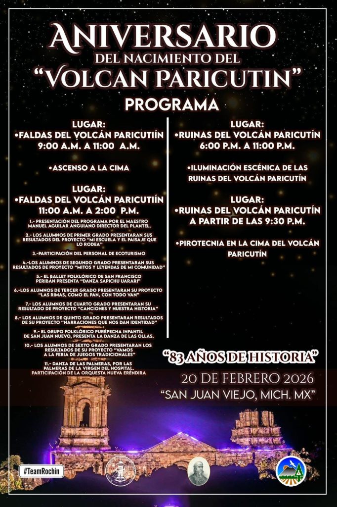 Monserrat Cervantes / La Voz de Michoacán Morelia, Michoacán. - El volcán más joven del continente americano cumple 83 años, y con su Aniversario llegan un sinfín de actividades que se desarrollarán alrededor del volcán. Está celebración se lleva a cabo por tres comunidades distintas. El evento se desarrollará hoy 20 de febrero en San Juan Viejo, Michoacán y tendrá lugar en los principales puntos del volcán: Las faldas, las ruinas y la cima. Cada evento contará con horarios diferentes y actividades diversas, que serán presentadas por alumnos de educación primaria, danzantes y personas provenientes de la comunidad, donde se celebrara una rica tradición y cultura, así como la mágica historia del nacimiento del volcán. Cronograma Faldas del Volcán Paricutín9:00 am a 11:00 am-Ascenso a la cima11:00 am a 2:00 pm Alumnos de primer grado presentan proyecto “Mi escuela y el paisaje que lo rodea” Participación del personal Ecoturístico Alumnos segundo grado presentan “Mitos y leyendas de mi comunidad” Baile Folclórico “Danza Sapichu” Alumnos de tercer grado presentan “Las rimas, como el pan, con todo van” Alumnos de cuarto grado presentan “Canciones y nuestra historia” Alumnos de quinto grado presentan “Narraciones que nos dan identidad” Grupo folclórico purépecha infantil presentan “La danza de las ollas” Alumnos de sexto grado presentan “Vamos a la feria de los juegos tradicionales” Danza de las palmeras, por las palmeras de la virgen del hospital. Ruinas del volcán Paricutín6:00 PM a 11:00 PM-Iluminación escénica de las ruinas del volcán Paricutín9:00 PM-Pirotecnia en la cima del volcán Paricutín El volcán y su impacto histórico y ecológicoLa historia que hay detrás del volcán marca el suceso ecológico más importante de la región; Su erupción ocurrió en 1943, noticia que dejo impactada al mundo entero, y permitió por primera vez estudiar el nacimiento y el desarrollo de un volcán. A 83 años de su nacimiento, se ha convertido hoy en símbolo del estado de Michoacán y su historia. Este fenómeno natural se ha convertido en un atractivo turístico que atrae a visitantes de México y del extranjero, quienes pueden recorrer la zona a pie o a caballo. El volcán aún es una zona boscosa, abundante en valles y montañas, de clima templado y lluvioso, con inviernos fríos y acompañados de neblina. Los visitantes también podrán disfrutar de la gastronomía regional que se ofrece.