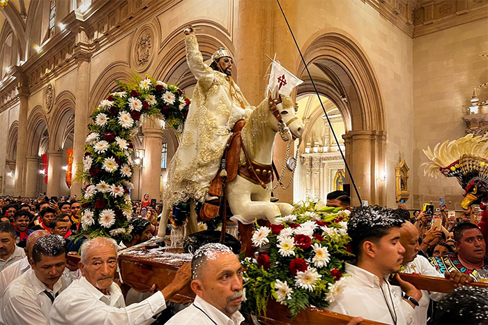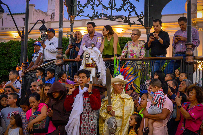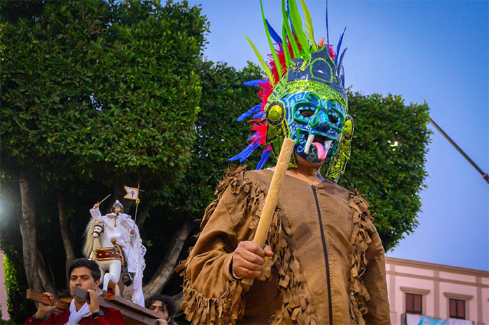 Redacción / La Voz de Michoacán Morelia, Michoacán. Santo Santiago se bate en duelo de espadas, a través de la danza, contra el demonio, representado en los emblemáticos Tlahualiles de Sahuayo, Michoacán. Esta ciudad, localizada al noreste de la entidad michoacana, vive sus tradicionales fiestas en honor del Apóstol Santiago, la celebración más grande antes que la del mártir San José Sánchez del Río y la de la Virgen de Guadalupe, desde el pasado 16 de julio y que culminarán el próximo 4 de agosto. Este martes 25 de julio, es la fiesta principal, según el calendario católico, de este santo muy venerado en diversas partes del estado y del país, y en Sahuayo no es la excepción, donde a partir de las 11:00 horas tendrá lugar la representación de “La lucha de la Fe” en la Danza de los Tlahualiles, en la plaza principal Miguel Hidalgo, con la participación de la Banda de Viento Tradicional Tacuárense. Sin embargo, el 4 de agosto se llevará a cabo el Día del Tlahualil, con la mega representación de la “La lucha de la Fe” por la agrupación de Tlahualiles de Sahuayo. Foto: Facebook Gobierno de Sahuayo. CONOCE LA DANZA DE LOS TLAHUALILES Esta danza muestra claramente el carácter bélico religioso y va describiendo la lucha entre lo pagano y lo católico, donde el Señor Santiago se bate en duelo de espadas con los Tlahualiles, quienes representan a los demonios. Santo Santiago es representado por un hombre con capa, espada y caballo, aunque este último elemento es apenas un cinto del que sobresale una cabeza de caballo. Foto: Facebook Gobierno de Sahuayo. En la indumentaria de los Tlahualiles destaca una colorida máscara que se fusiona con una cresta a manera de penacho de más de un metro de altura. Dicha máscara-penacho alcanza los 30 kilogramos de peso. Por otra parte, los Tlahualiles van vestidos con una especie de bata roja de terciopelo con barritas metálicas cosidas desde el pecho hasta la bastilla del traje, a manera de flequillo y cascabel. Foto: Facebook Gobierno de Sahuayo. Los Tlahualiles realizan una procesión, la cual es encabezada por la imagen del Patrón Santiago, seguido por las cuatrillas integradas por niños, jóvenes y adultos. Durante la procesión, todos los grupos de Tlahualiles entran a todas las iglesias que se encuentran a su paso a lo largo del recorrido, hasta llegar a la iglesia en que habrá de quedarse el santo patrono, recorrido que se prolonga hasta toda la noche. Foto: Facebook Gobierno de Sahuayo. MÁS DE LOS FESTEJOS EN SAHUAYO • 25 de julio (21:00 horas): Presentación de DJ’s Élite, en la plaza principal Miguel Hidalgo, y de las bandas Sahuayo y Pelillos, frente a la presidencia municipal.• 26 de julio (20:00 horas): Banda Gran Marimbol, en la plaza principal Miguel Hidalgo.• 27 de julio (19:00 horas): Escuela de Danza VI Dance Studio, en la plaza principal Miguel Hidalgo; Grupo Broadway (20:00 horas / plaza principal).• 28 de julio (20:00 horas): Grupo Selección Musical, en la plaza principal Miguel Hidalgo.• 29 de julio (20:00 horas): Contrapunto Norteño, en la plaza principal Miguel Hidalgo.• 30 de julio: Exposición Pictórica Ifantil Taller de Pintura “El Arlequín” (11:00 horas / plaza Miguel Hidalgo); presentación de “La lucha de la Fe” por la Danza de Tlahualiles de Sahuayo (13:00 horas / plaza Miguel Hidalgo); Nova Generación (20:00 horas / plaza Miguel Hidalgo).• 31 de julio: Exposición cultural Jugando con Teo el Tlahualil (18:00 horas / plaza Miguel Hidalgo); Banda Sahuayo (20:00 horas / plaza Miguel Hidalgo).• 1 de agosto: Exposición de dibujo y pintura, de la autora Virginia Álvarez del taller de pintura “El Arlequín”; Surpiro Norteño (20:00 horas / plaza Miguel Hidalgo).• 2 de agosto: “Día del Tlahualil”, mega representación de la “La lucha de la Fe” por la agrupación de Tlahualiles de Sahuayo (20:00 horas / plaza Miguel Hidalgo); Banda Tekila (20:00 horas / plaza Miguel Hidalgo).• 3 de agosto: Exposición Fotográfica “Elaborando para el Mundo”, del autor Luis Fernando Villanueva (18:00 horas / plaza Miguel Hidalgo). Súper Show Cassio (20:00h horas / plaza Miguel Hidalgo). • 4 de agosto: Representación de “La lucha de la Fe” por la Danza de Tlahualiles de Sahuayo (11:00 horas / plaza Miguel Hidalgo); DJ’s Élite (21:00 horas / plaza Miguel Hidalgo); Horacio y su Quinto Norteño, además de la Incontenible Banda Astilleros (21:00 horas / frente a la presidencia municipal). Con información de la Secretaría de Turismo de Michoacán y del Ayuntamiento de Sahuayo.