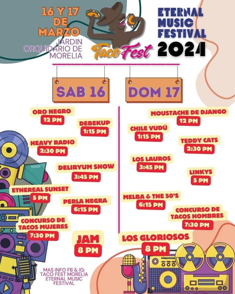 Redacción / La Voz de Michoacán Morelia, Michoacán. ¿Planes para este fin? Si no es así, aquí te recomendamos opciones gastronómicas, de bebida y culturales, para que disfrutes con familia y amigos. TacoFest, cerveza artesanal, K’uínchekua, concurso de karaoke, pico de gallo y combates de box te esperan en Morelia, Zacapu, Tzintzuntzan y Ziracuaretiro. ¡A COMER TACOS! Con más de 50 variedades de tacos y 30 taqueros, en el jardín del orquidario del Centro de Convenciones y Exposiciones de Morelia (Ceconexpo), este 16 y 17 de marzo se lleva a cabo el TacoFest 2024, en un horario de 10 de la mañana a 9 de la noche. Además, habrá música en vivo, concurso “Quién come más tacos”, artesanías, mezcal y cerveza artesanales y más coctelería; postres y helados. Asimismo, en este evento gastronómico 100 por ciento familiar y que tiene un costo de entrada de 20 pesos por persona, destaca la rifa de un viaje a la playa; también hay servicio de niñeras. ¡UNA BIEN HELADA Y ARTESANAL! Para mitigar el calor, una cerveza artesanal bien fría en la mera cuna del Imperio Purépecha, en Zacapu, donde en la Plaza Reforma hoy y mañana se realiza el Séptimo Festival de Cerveza Artesanal. En este evento participan 14 expositores de marcas como Michoacán, Molina, Dos Oros, Josefinita, Copérnico, Paulina, Tsipekua y varias más. Los asistentes podrán degustar de variados estilos de esta bebida, desde el ale hasta la amarga stouts. Además de la amplia selección cervecera, el festival contará con la presencia de ocho bandas en vivo. El sábado 16, se presentarán Polifónicos, Charro Mx, Dejavú Cm y Stone City. Mientras que el domingo será el turno de Storm, Garage, Eleven projet y La Granjamona. ¡MULTICULTURALIDAD EN TZINTZUNTZAN Desde el pasado jueves arrancó la fiesta multicultural de la K’uínchekua, en la zona arqueológica de las Yácatas de Tzintzuntzan, un punto de encuentro de la historia, música y danza de Michoacán. En este evento participan 380 artistas, que muestran lo que desarrollan en cada una de sus regiones. “TIERRA, CULTURA Y TRADICIÓN” Con actividades culturales, deportivas y gastronómicas, la ExpoFeria “Tierra, Cultura y Tradición” se lleva a cabo en Ziracuaretiro desde jueves 14 y hasta mañana domingo 17 de marzo. Este sábado será el pesaje oficial de box y los combates de esta disciplina. Así mismo, habrá un concurso de karaoke a las 21:00 horas y una sesión de baile a las 22:00 horas, ambos en la plaza principal. Mañana elaborarán pico de gallo, un torneo de futbol, una demostración de Go-Karts y un baile con banda en la Unidad Deportiva. Así mismo, en la plaza principal a partir de las 18:00 horas se realizará una presentación, una pasarela y un baile.