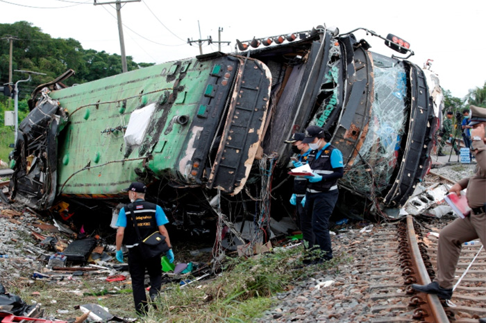 18 muertos en una colisión entre un tren y un autobús al este de Bangkok