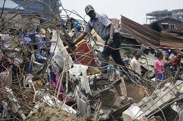 Suman 20 muertos y 45 heridos por derrumbe de edificio escolar en Lagos