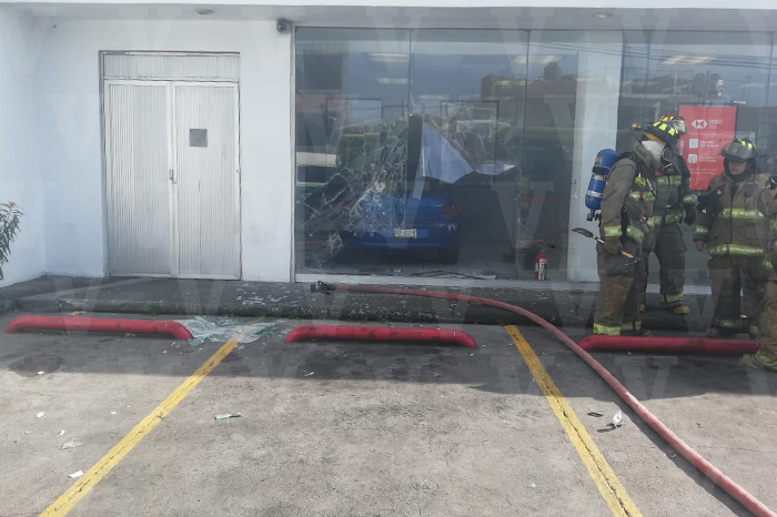 Auto da un acelerón y se mete a un banco; no hay víctimas