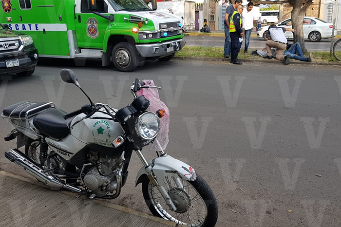 Trabajador de tortillería herido al chocar su moto contra una camioneta de frituras