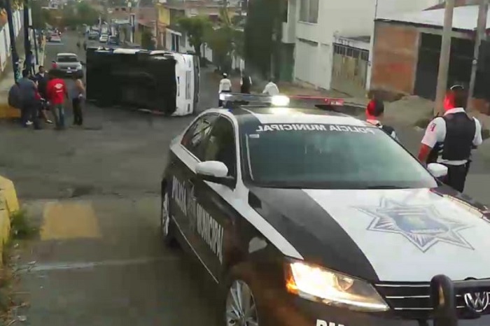 Camión de la Ruta 1 vuelca en la colonia La Esperanza de Morelia