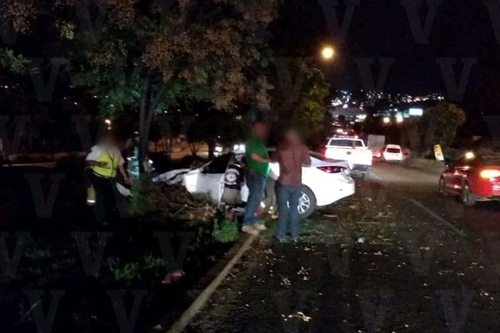 Automovilista herida al chocar contra árbol en el Libramiento de Morelia