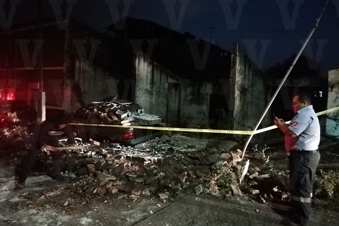 Barda de inmueble en “obra negra” se viene abajo y daña dos carros