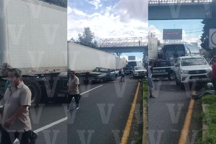 Choca camioneta contra tráiler en la Av. Morelos Norte