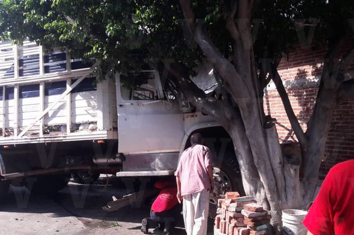 Camión de carga se queda sin frenos e impacta a 2 vehículos