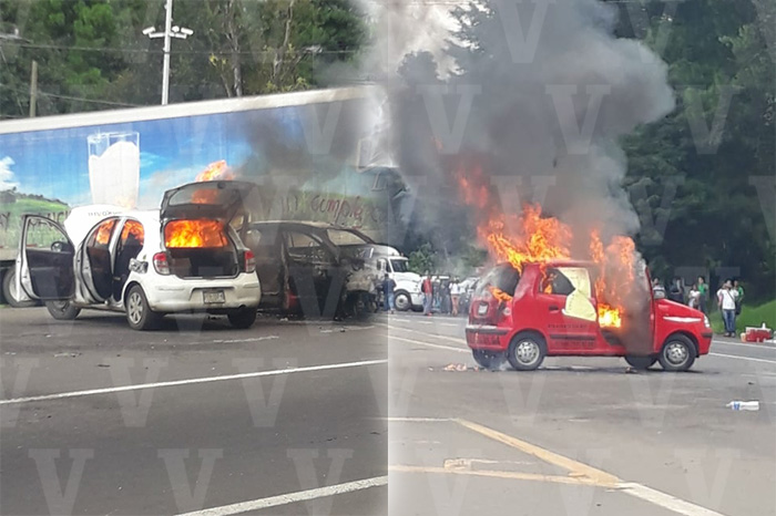 Capacuarenses bloquean carretera a Los Reyes e incendian 2 vehículos
