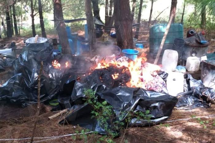 Destruye Policía Michoacán laboratorio y asegura 75 kilos de droga en Uruapan