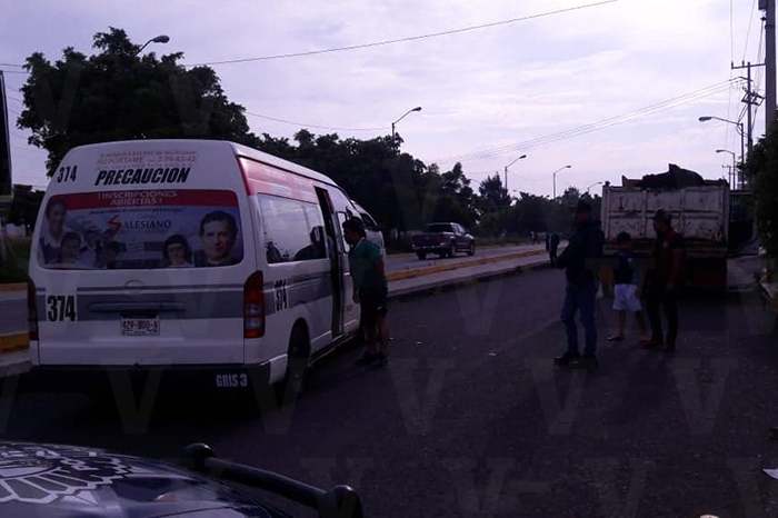 Resultan heridos tres pasajeros en un choque de combi