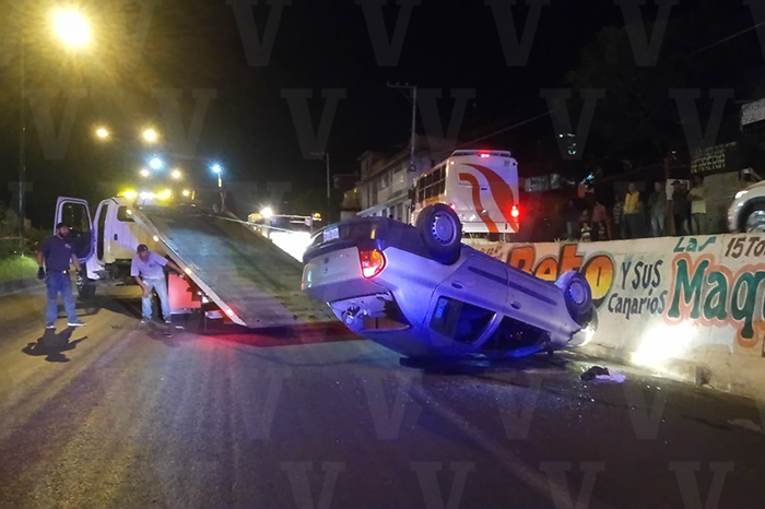 Vuelca automóvil sobre la Avenida Madero Poniente