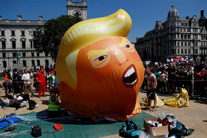 Baby Trump sobrevuela Londres; miles protestan contra el presidente de EUA