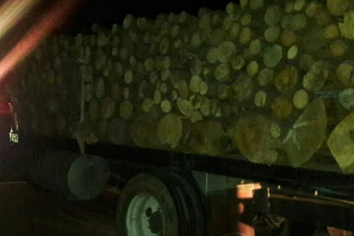 Aseguran camión cargado de madera en Senguio