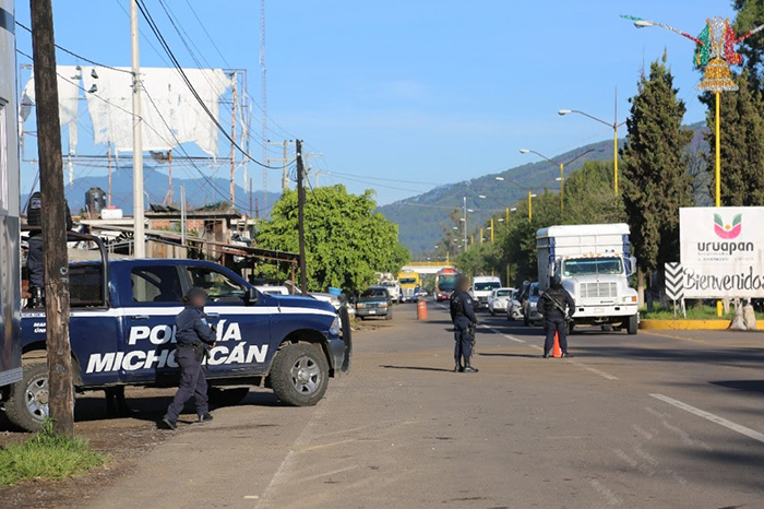 Por enfrentamiento en Uruapan, bloquean y queman vehículos