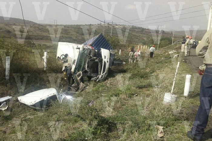 Vuelca tráiler en la Morelia-Salamanca; líneas eléctricas, afectadas